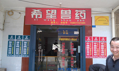 不知不覺一路貼到陳河鎮(zhèn)上,大家加快了進度,沒多久,古鎮(zhèn)主街道兩側(cè)的電線桿上就貼滿了回盛的品牌宣傳畫。我們驚喜的發(fā)現(xiàn),鎮(zhèn)上一家希望獸藥店,在店門口醒目的位置還打出了“回盛股份新華星動保連鎖獸藥應(yīng)城銷量第一”的標語。老板談起銷售業(yè)績一臉歡喜,看得出來回盛旗下的產(chǎn)品在鎮(zhèn)上比較暢銷,市場占有率很高。