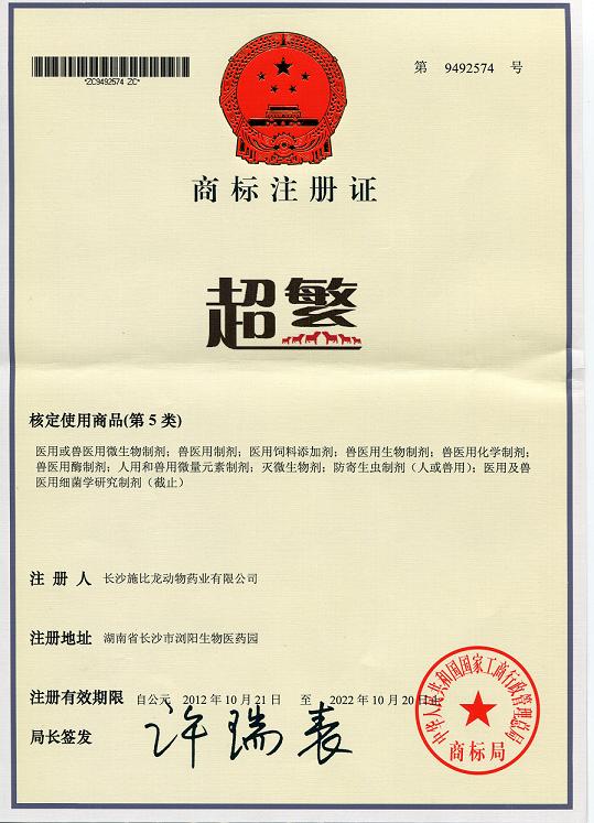 超繁商標注冊證